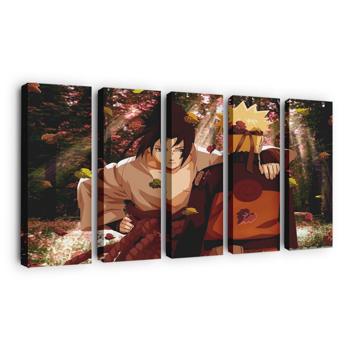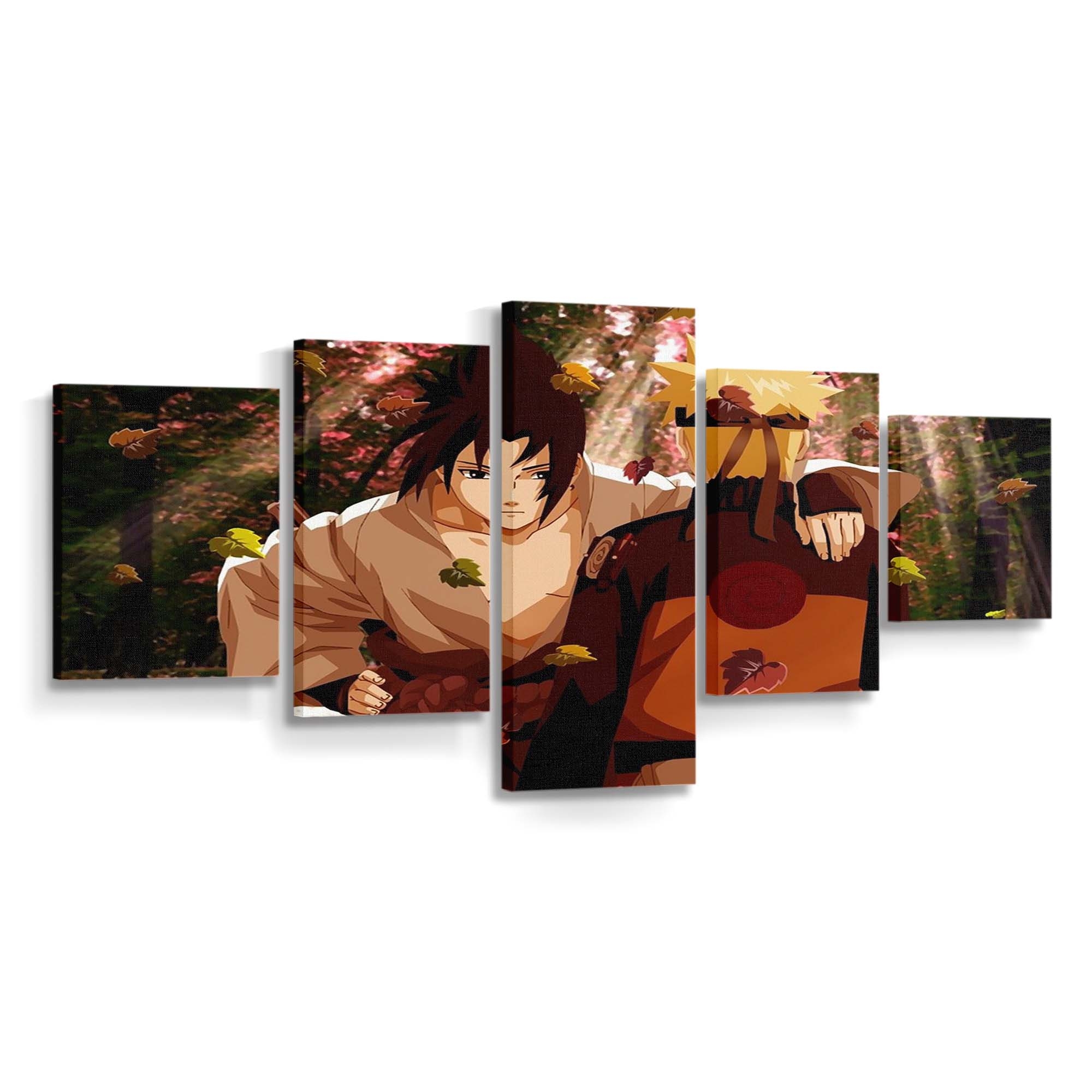 Anime Naruto Shippuuden Uzumaki Naruto Uchiha Sasuke Fall Leaves – Anime Wandbild – Leinwandbild