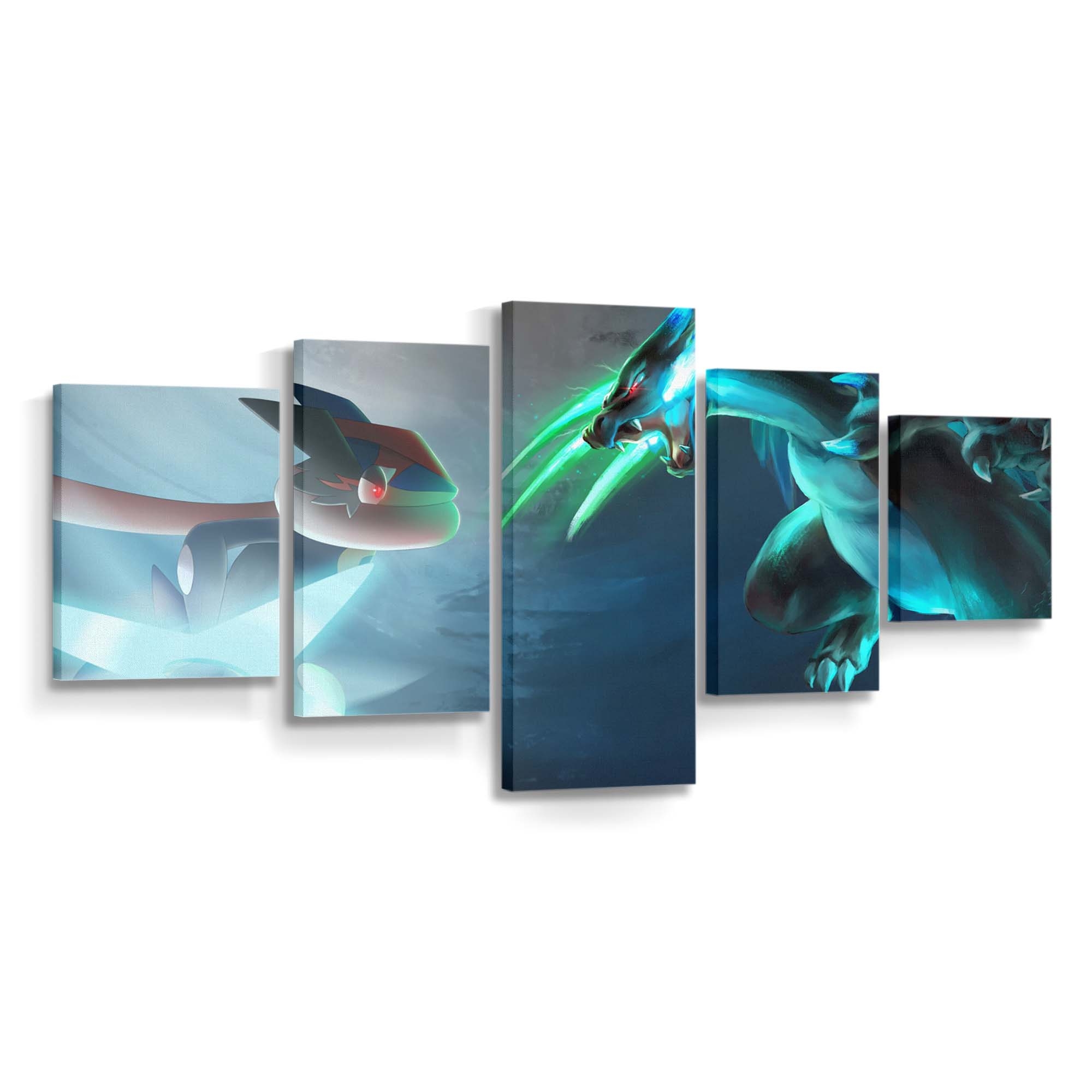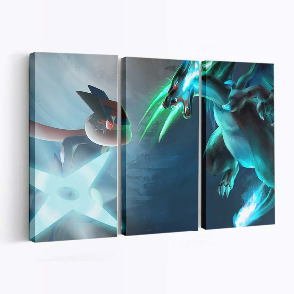 Anime Underwater Charizard Greninja Mega Charizard X Leinwandbilder – Wandbilder – Ein Stück Kindheit & Anime-Magie für deine Wände