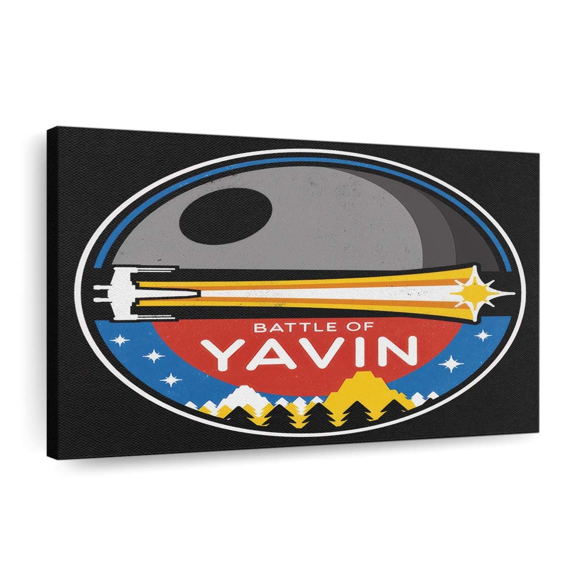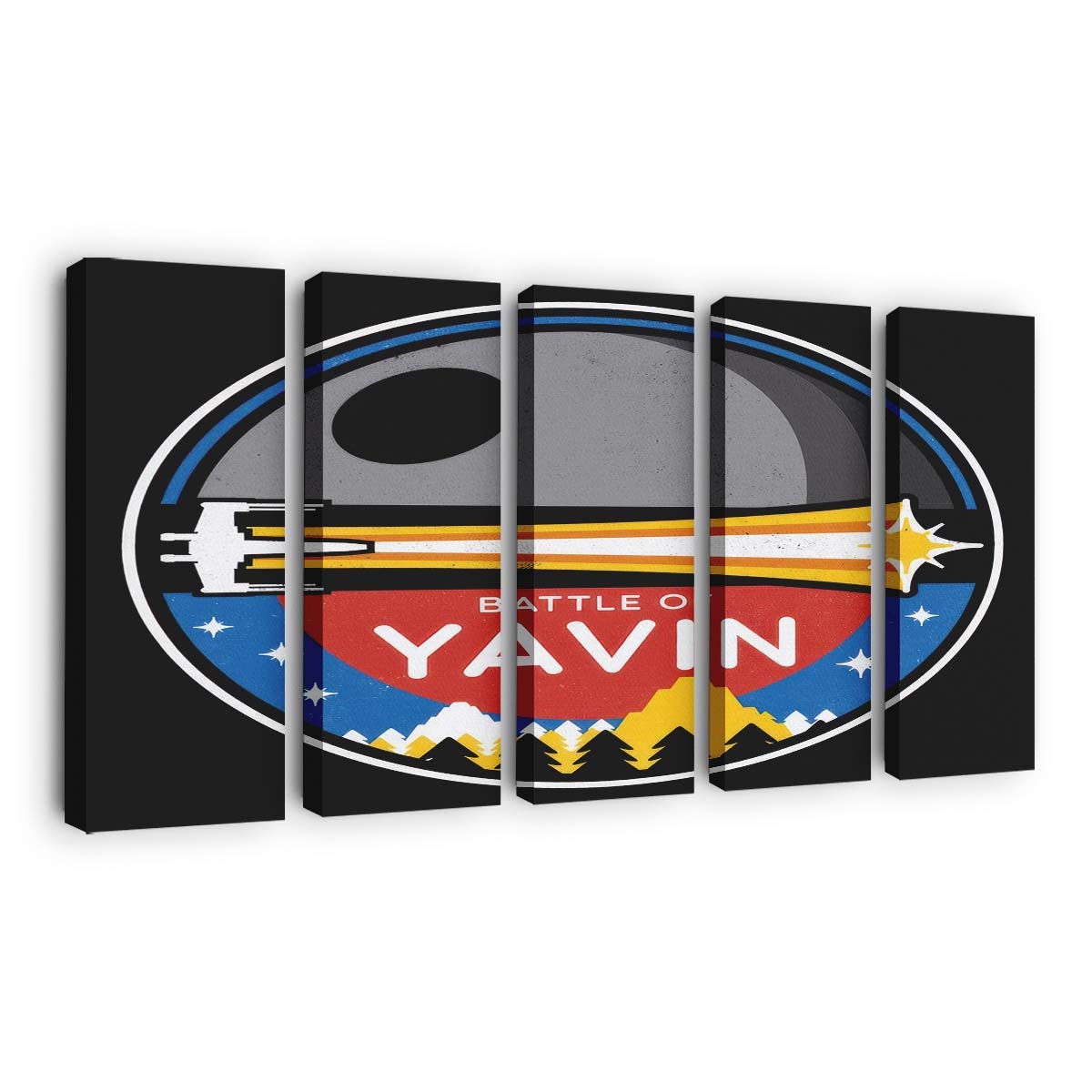 - Ausdrucksstarkes Motiv: Die Schlacht von Yavin Leinwandbilder – Wanddeko in einer Interpretation, die Atmosphäre und Charakter einfängt.