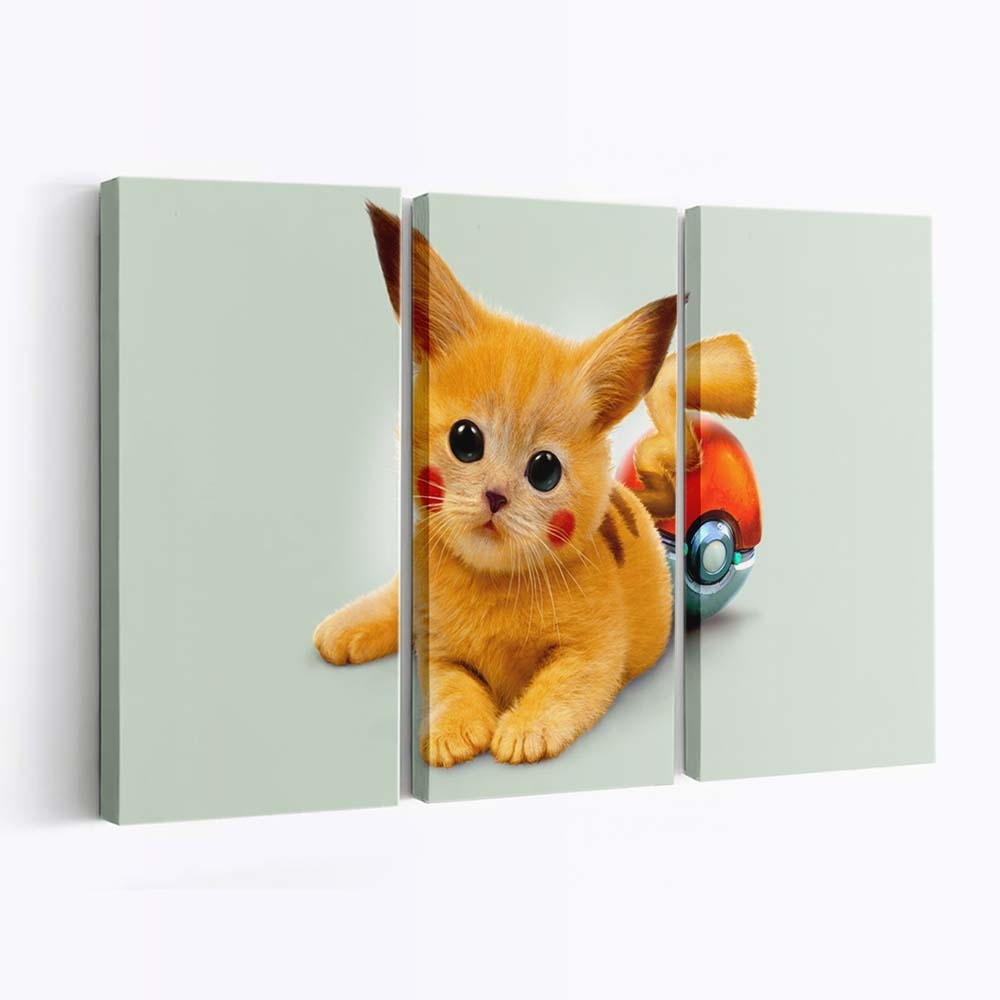 Pikachu Cat Red Eyes Whiskers Kitty Art Leinwandbilder – Wandbilder – Ein Stück Kindheit & Anime-Magie für deine Wände
