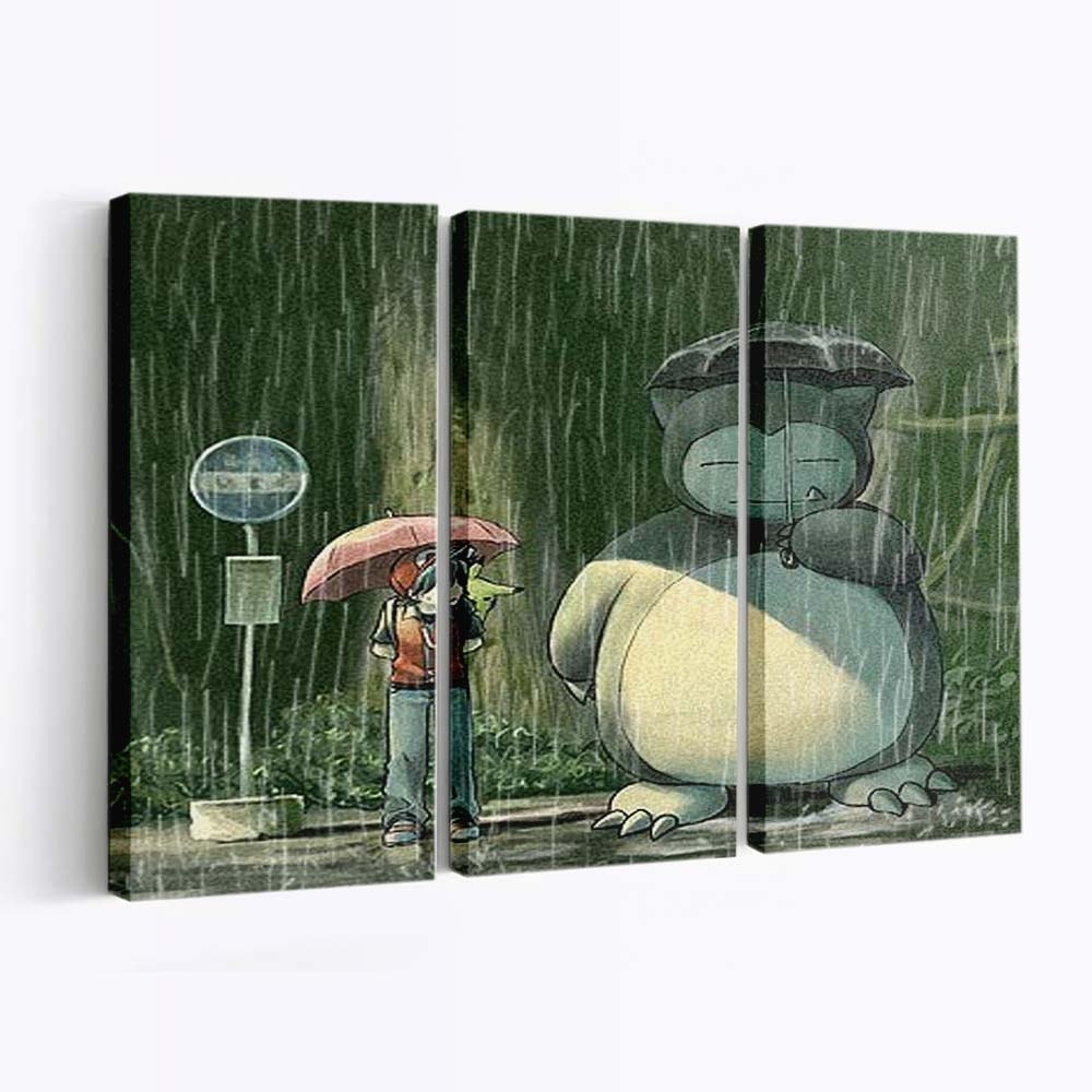 Pokemon Bus Parody Rain Snorlax Leinwandbilder – Wandbilder – Ein Stück Kindheit & Anime-Magie für deine Wände