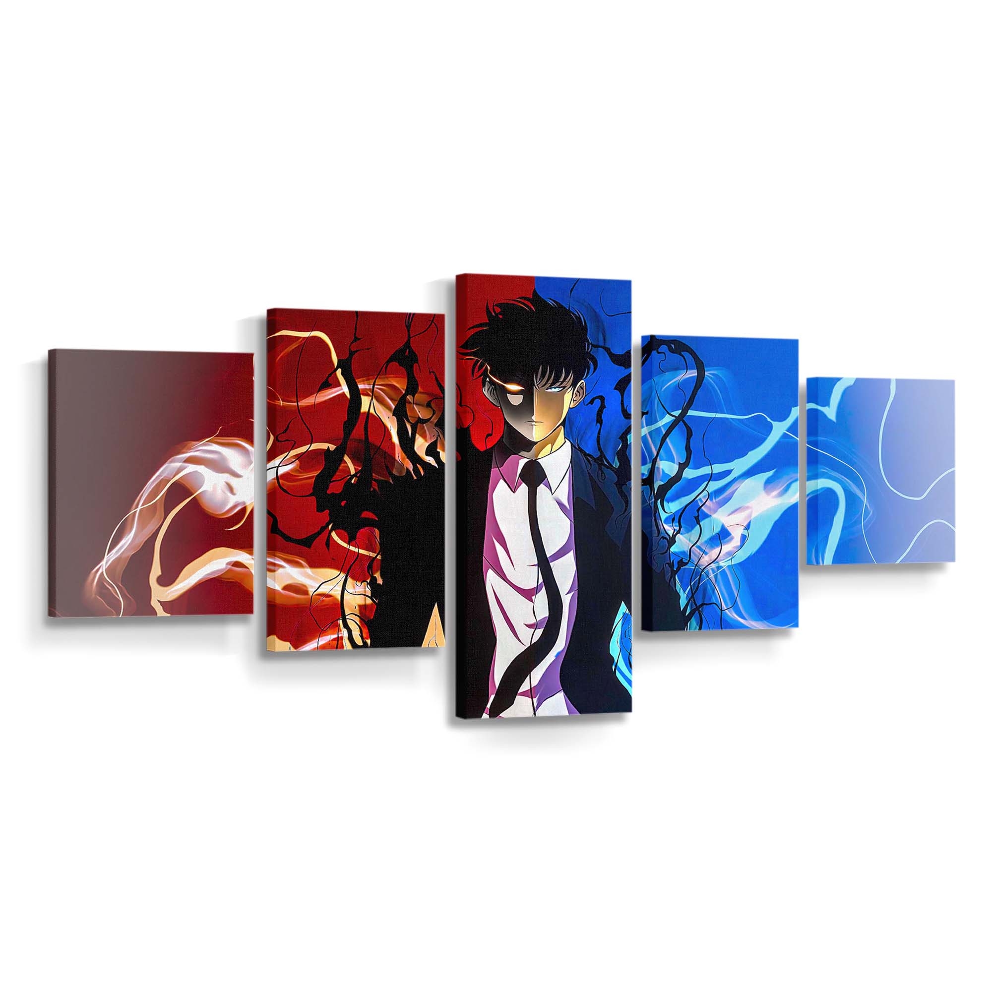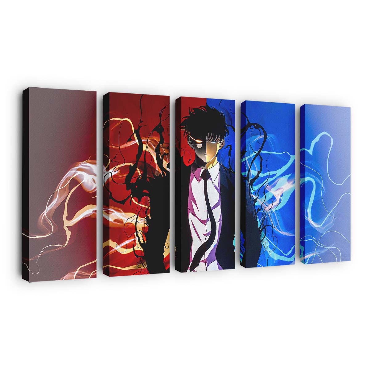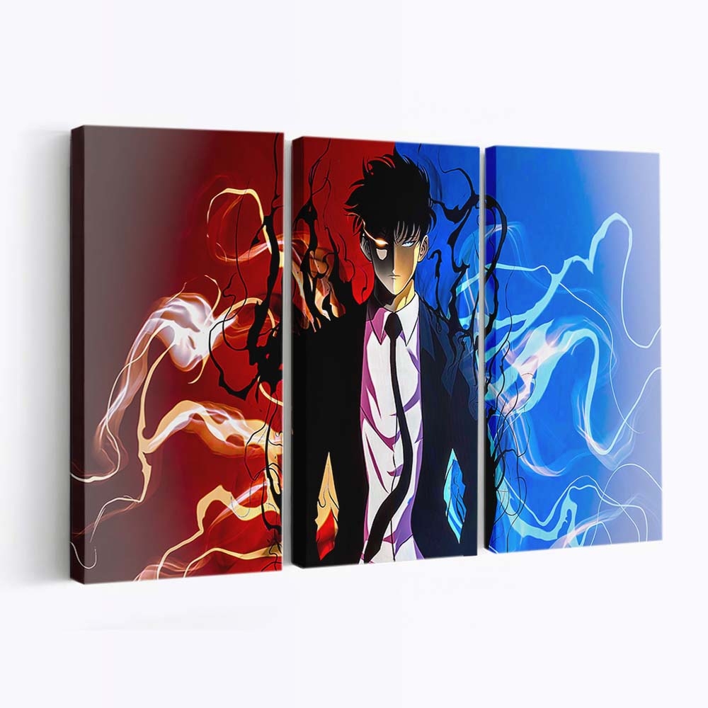 Solo Leveling Featuring A Dark Suited Character Wicontrasting Fiery Red – Anime Leinwandbild – Wanddeko